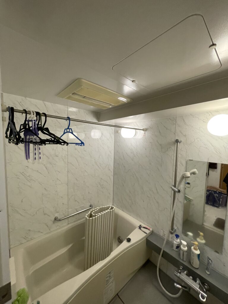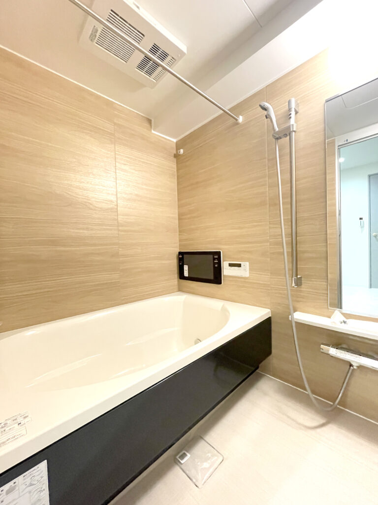 また、浴室乾燥機付きのためバルコニーでの外干しが気になる方や翌日に必要な大事な衣類の速乾のための空間としても利用出来ます。さらに浴室TVを設置することでバスタイムをゆったりと過ごせる空間にしております。